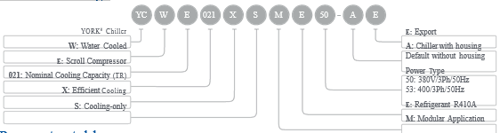 Flexible Application When your reputation is at stake, count on efficient, reliable cooling and heating solutions from YORK® to lower costs and maximize uptime with dependability you can count-on. Have peace of minding in knowing that Johnson Controls has the largest service and preventative maintenance organization in the world. Flexible configuration: Each unit can be installed and operated separately. Multiple units can also be combined for optimal performance depending on the customer’s need. Different models can combined with up to 8 units connected. Compact design: The units can be moved using freight elevators to save the installation cost In renovation applications there is no need to dismantle the existing building structures-reducing chiller replacement costs. Product naming