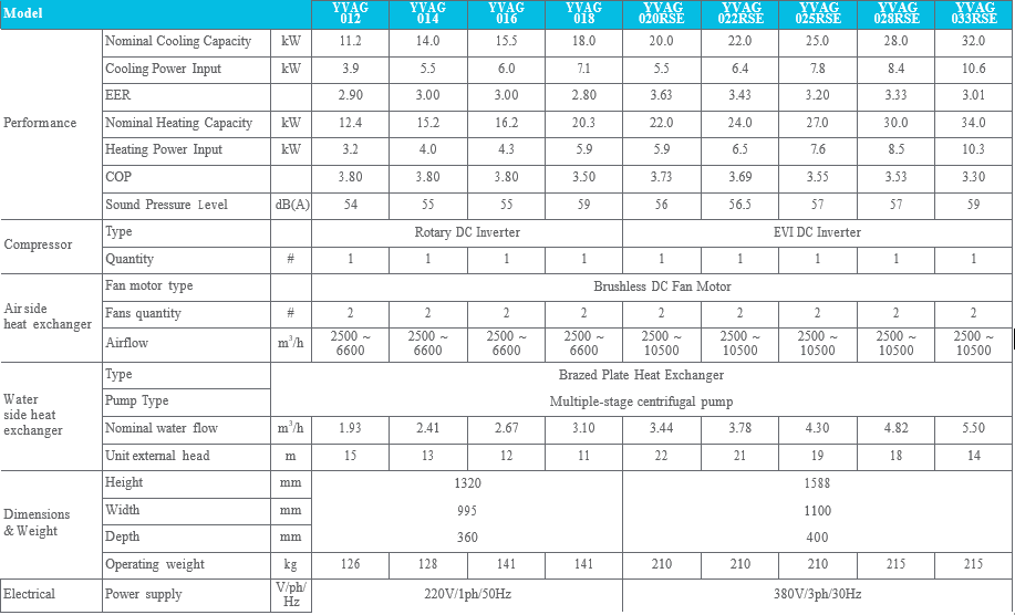 +) The units are designed for modular installations (up to 4 module combinations among all the models) to meet the needs of different residential and light commercial building demands. This permits installed capacities from 11.2-128 kW.